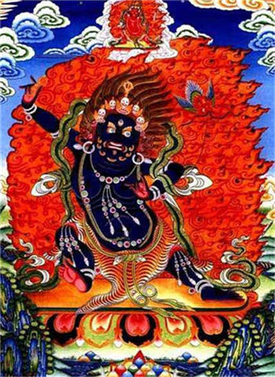 观想佛母化成蓝色吽字,融入佛父心间红色吽字,佛父化为红色吽字,红色吽字飞入行者自身心间,自他所有众生恒时得到马头金刚的加持。