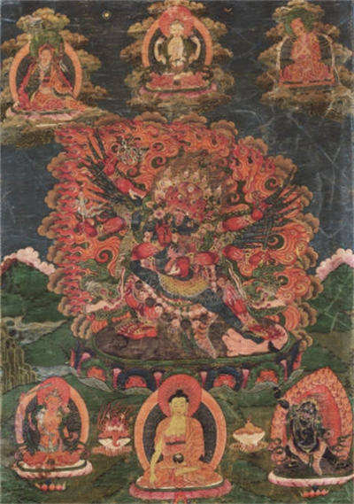 忿怒莲花海会众围绕,