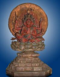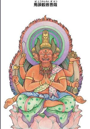 像往常一样,洛格桑珠备好宝石和香料,前往益州。途径贡嘎雪山,忽感身体疲惫,困意绵绵,于是便在山脚稍事休息,很快便沉沉睡去。突然他听到耳旁一阵轰鸣,睁眼一看,只见眼前立着一尊从未见过的菩萨法像,通体赤红,头顶绿色马首,身后祥云涌动,似万马奔腾。洛格桑珠连忙跪拜在地,只听空传佛音:罹难须有时,红光自相持。洛格桑珠心中不解,欲请菩萨开示,菩萨早已杳然而去。