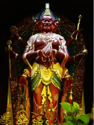 马头明王为八大明王之一,是密教胎藏界三部明王中,莲华部的忿怒持明王。位于胎藏现图曼荼罗观音院内,又称为马头大士、马头明王、马头金刚明王、俗称马头尊。密号为啖食金刚、迅速金刚,与《摩诃止观》中所说六观音的师子无畏观音相配,在六道中畜生道的救护王。