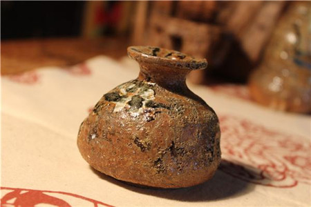 漉水囊:若常用者。其格,以生铜铸之,以备水湿无有苔秽、腥涩之意;以熟铜、苔秽;铁,腥涩也。林栖谷隐者,或用之竹木。木与竹非持久涉远之具,故用之生铜,其囊,织青竹以卷之,裁碧缣以缝之,细翠钿以缀之,又作油绿囊以贮之。圆径五寸,柄一寸五分。出自茶圣陆羽《茶经·四之器》