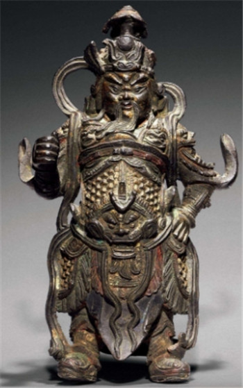 持鼠形象的毗沙门天王像。四川省博物院藏多闻天王原形象为右手托宝塔,左手持三叉戟,被认为是神话中托塔天王之原型。